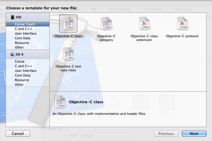 - Modify the RootViewController.h file so that it is aware of the new test1ViewController.