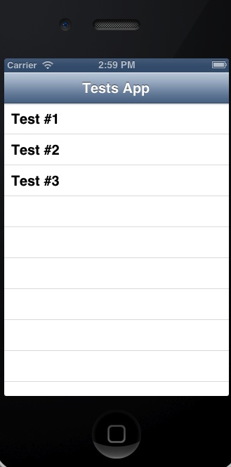 - Next initialize the test list in the Table View in the RootViewController.m file and release the list when no longer required